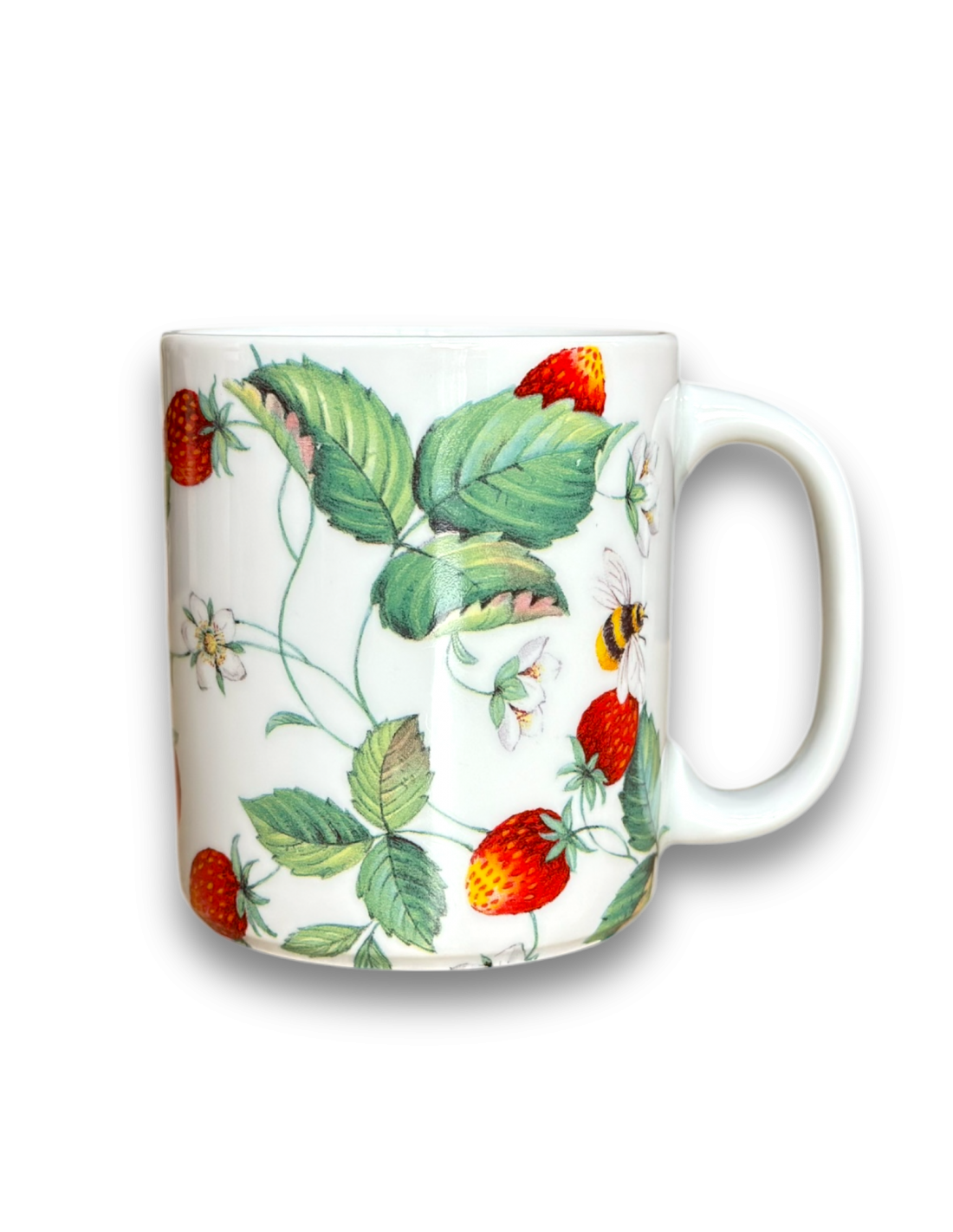 Ceașcă mare din porțelan, cu o capacitate de 490 ml, cu decor cu fragute Aline Strawberry, ideală pentru băuturi calde.