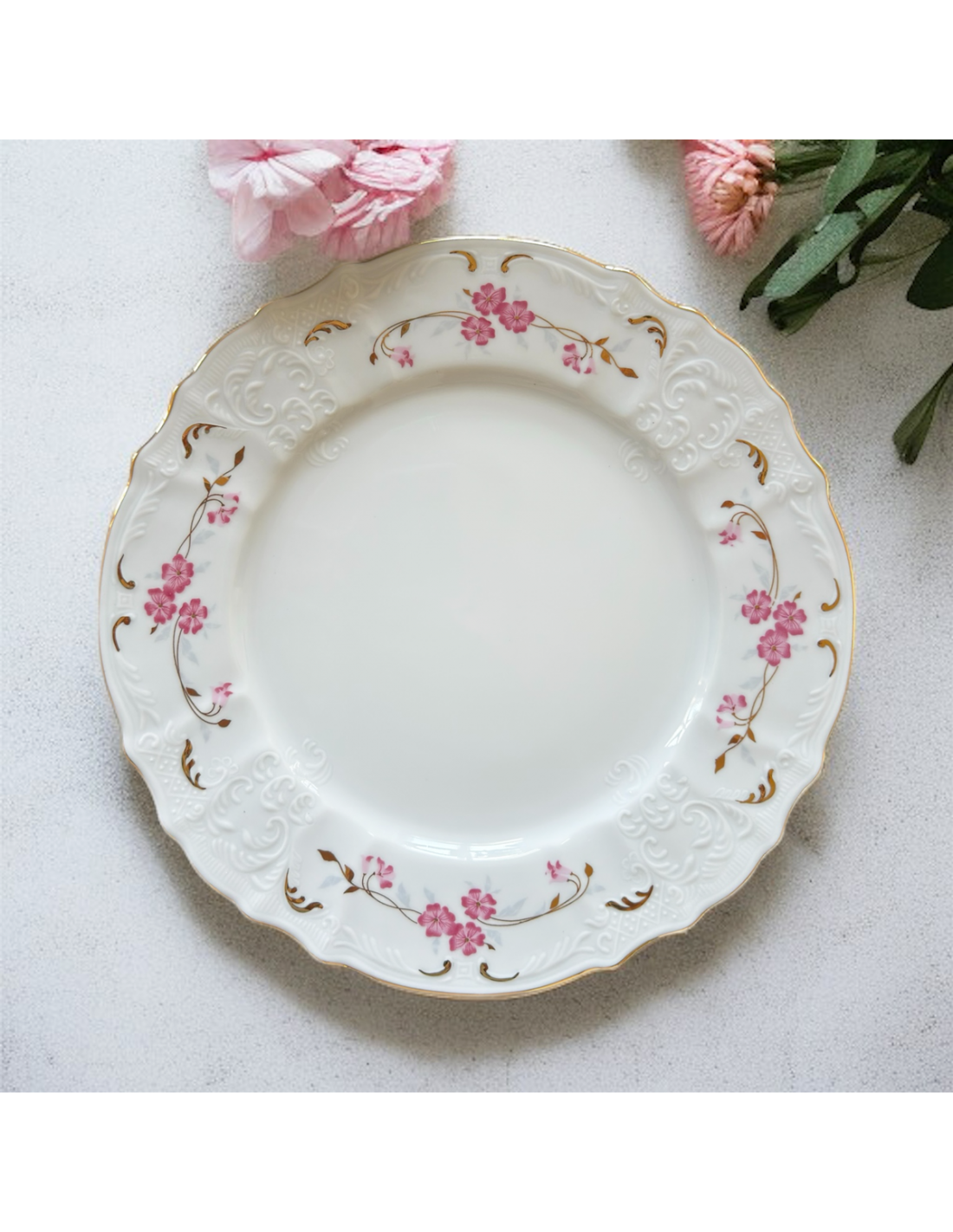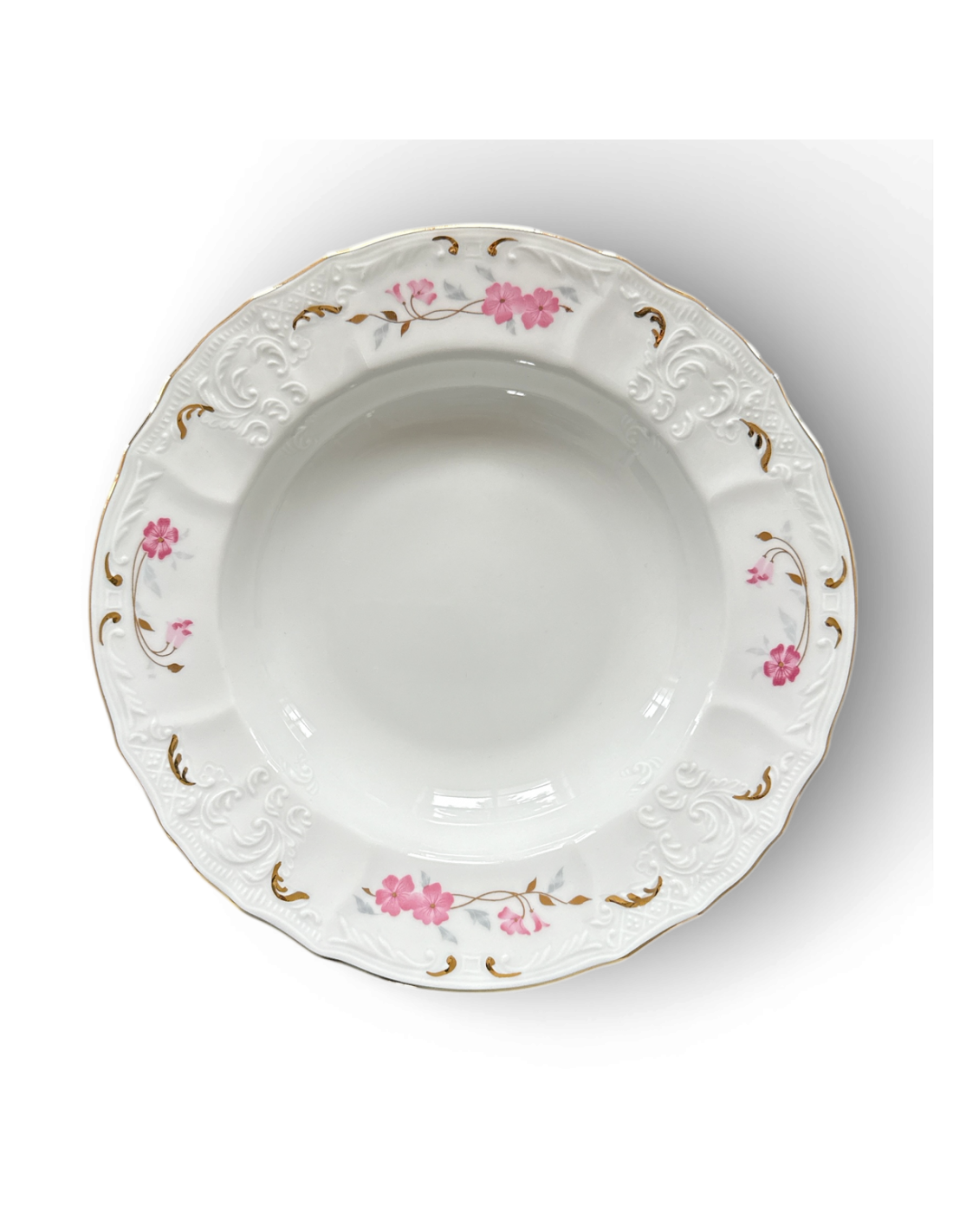 Berlin Premium, trasat manual cu aut lucios, o combinatie aparte intre o linie clasica dintr-un portelan premium cu un relief stil baroc si un decor delicat floral.