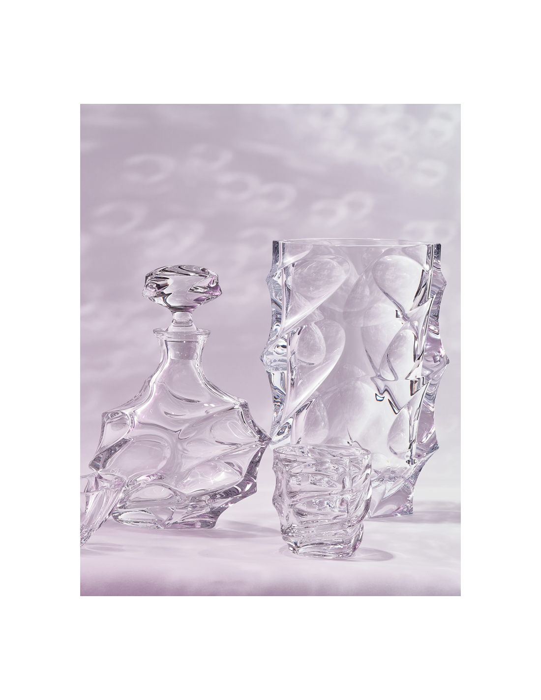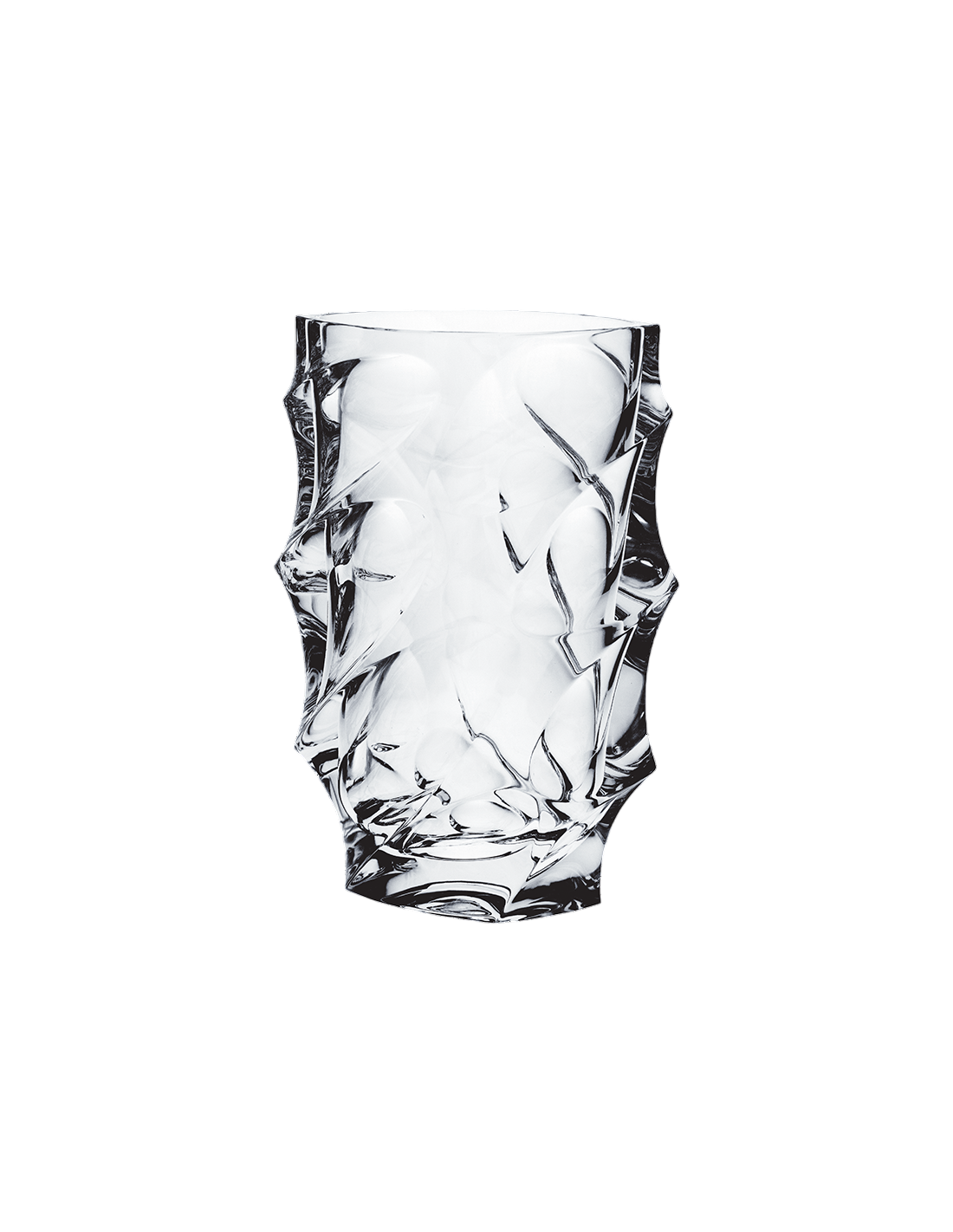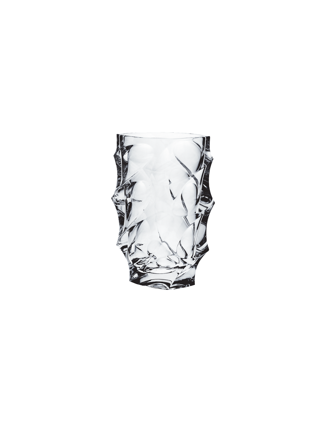 Vaza Calypso 28 cm, realizată din cristal Bohemia, se remarcă printr-un design sculptural dinamic, caracterizat de forme neregulate și reliefuri bine definite. Suprafața reflectă lumina în multiple direcții, evidențiind claritatea și calitatea cristalului.